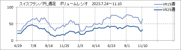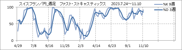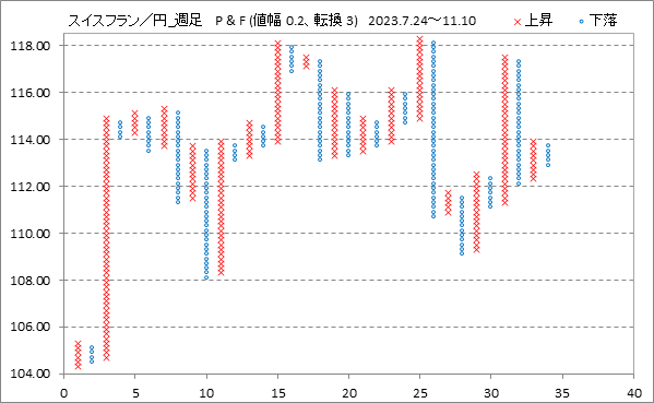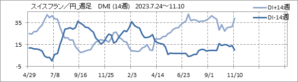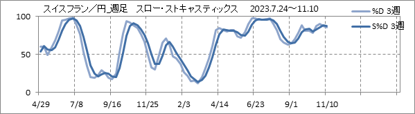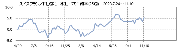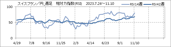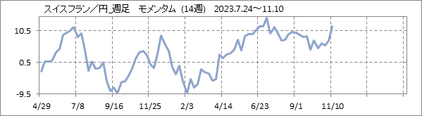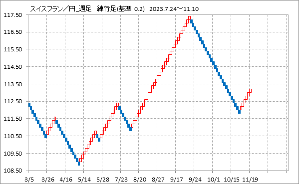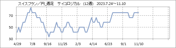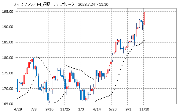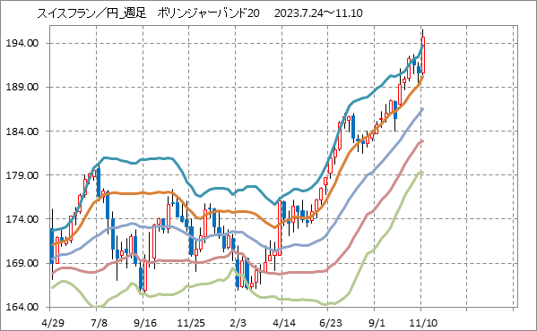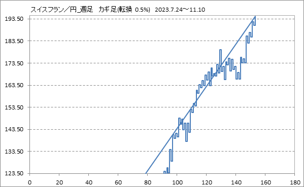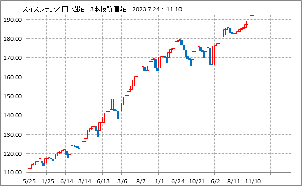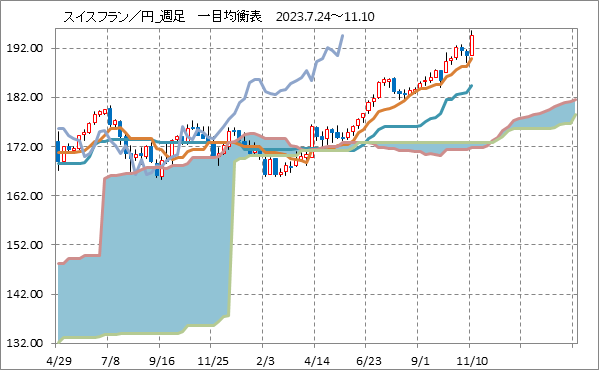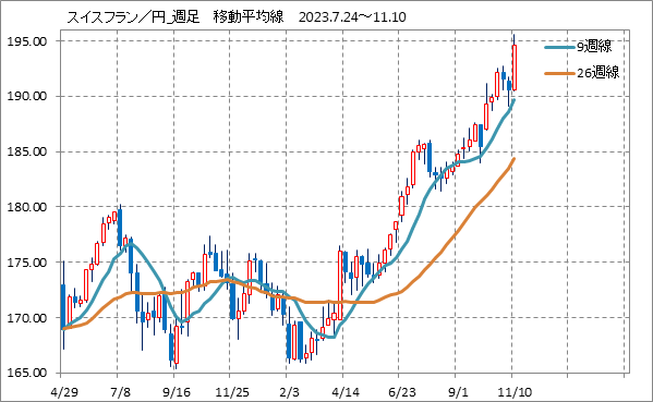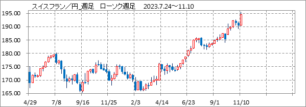 [スイスフラン/円]週足チャート