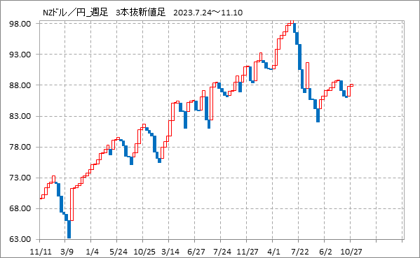 [NZドル/円]週足チャート