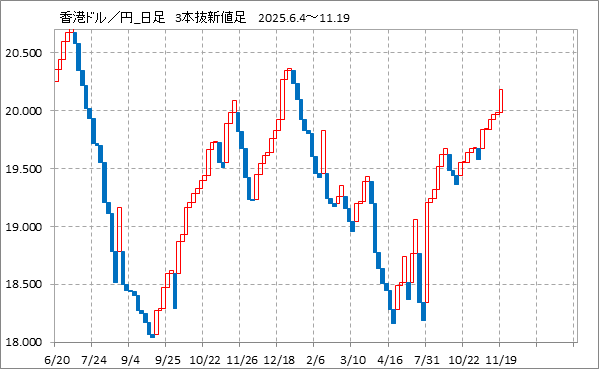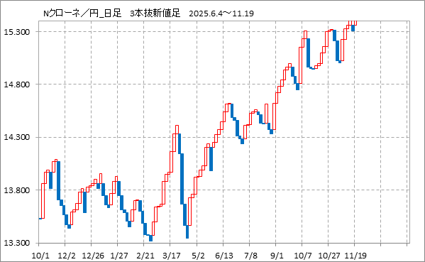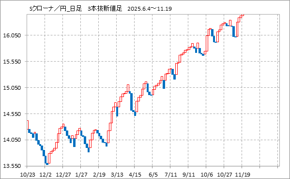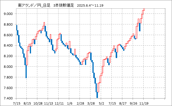 | ランド/円 | Nクローネ/円 | Sクローナ/円 | Pズロチ/円 | 香港ドル/円 |