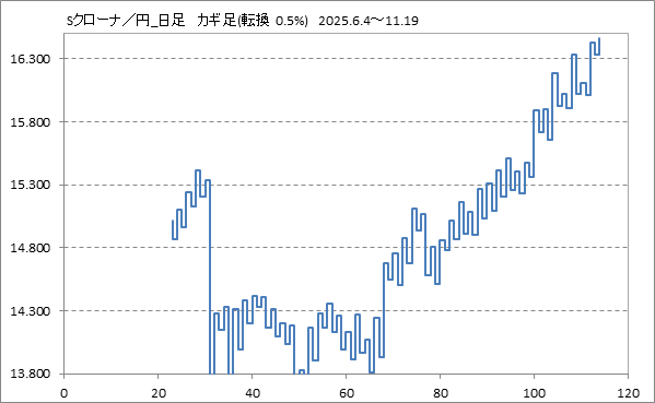 | ランド/円 | Nクローネ/円 | Sクローナ/円 | Pズロチ/円 | 香港ドル/円 |