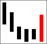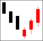 続落した後の安値圏での出現は、下げ止まりとなるケースが多く、上昇の始まりと見る。 【ポイント】 陽線の引け値が陰線の寄り値より大きく上抜けているとなお良い。 |